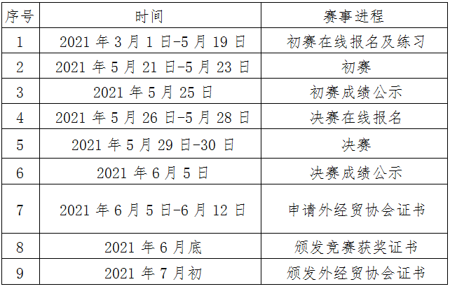 为贯彻落实《高等学校外国语言文学类专业教学质量国家标准》,探索商务英语专业以赛促教、以赛促学的途径与方法,培养学生商务素养,搭建教学成果交流和学生风采展示平台,经研究决定于2021年3月-7月举办“第五届全国高校商务英语竞赛”(以下简称“竞赛”)。现将有关工作通知如下: