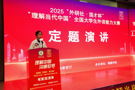 11月1日—2日,2025“外研社·国才杯”“理解当代中国”全国大学生外语能力大赛(安徽赛区复赛)在铜陵学院进行,我校学生在英语组综合能力赛项、演讲赛项、笔译赛项中取得优异成绩。