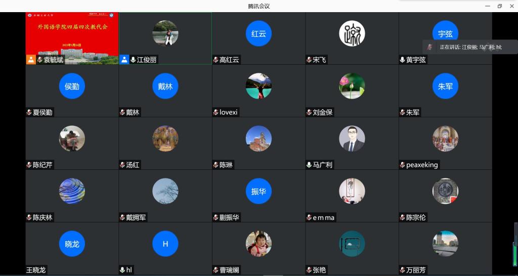 2021年1月26日下午,伟德国际bevictor1946以腾讯会议形式召开四届四次教代会。学院教代会代表和列席代表参加了会议。教代会应到代表32人,实到29人,符合规定开会人数。列席代表3人列席了会议。会议由院分工会主席江俊丽主持。